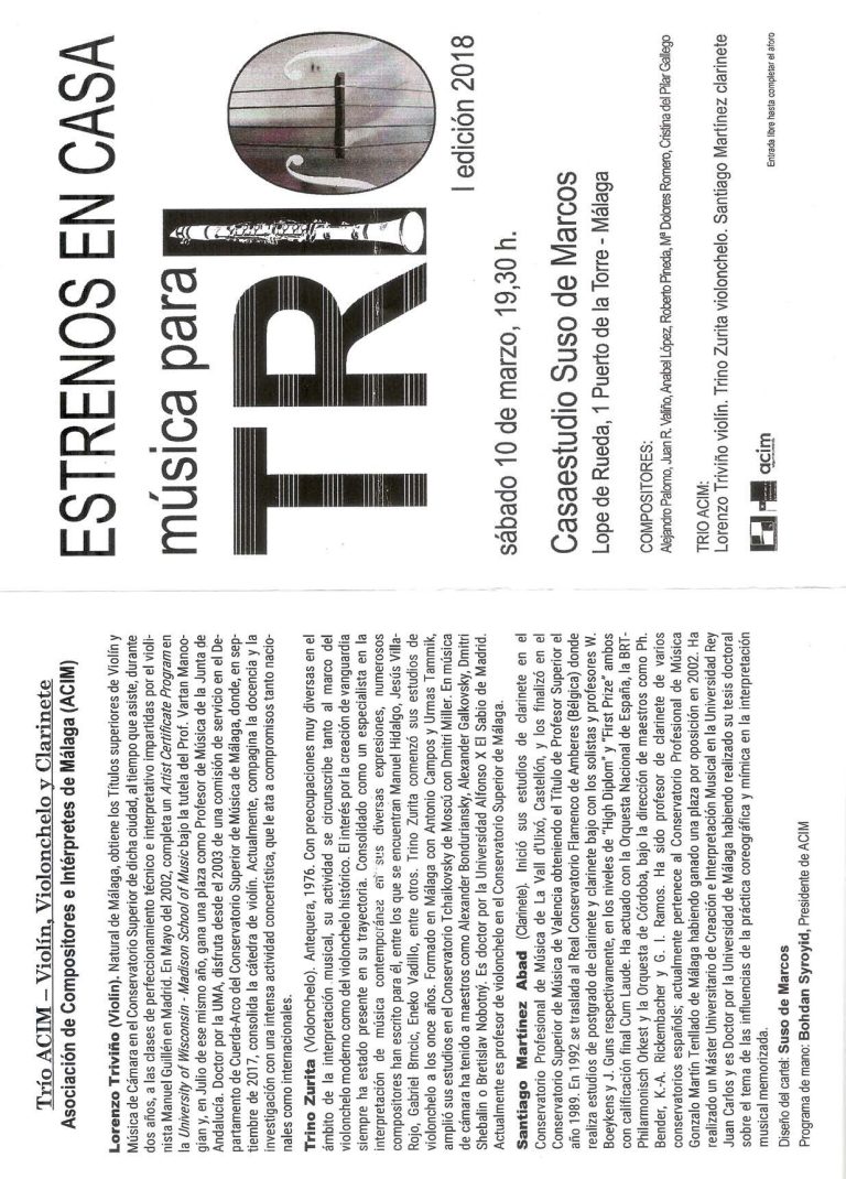 Casaestudio de Suso de Marcos (Málaga). Ciclo “Estrenos en casa 2018”. 10 de marzo de 2018.