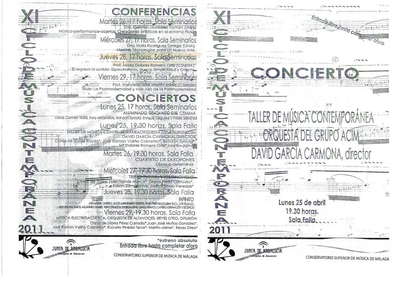 XI Ciclo de Música Contemporánea. Conservatorio Superior de Música de Málaga. 25 de Abril de 2011.
